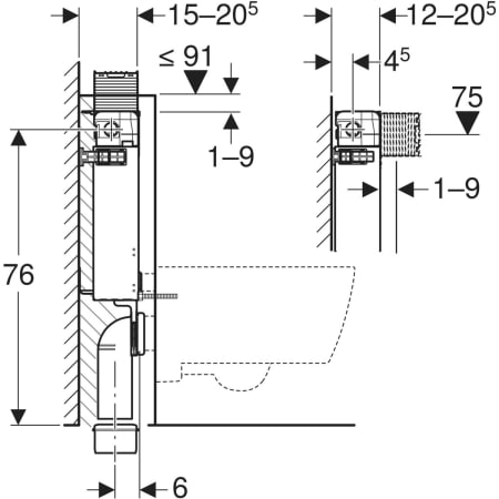 Flush volume large, adjustment range 4 / 4.5 / 6 / 7.5 l |